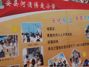2010年4月28日,爱心企业一路创科网络技术有限公司(即:1616上网导航),联合红十字基金会、百度联盟、爱心歌星孙悦等一行数十人,驱车来到了位于四川省的重灾区——绵阳市安县河清小学,一起参加和见证了灾后新校舍的落成启动仪式。